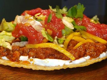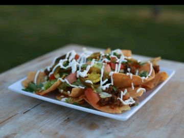Our signature tostado meat served on top of corn tortilla chips. Topped with shredded cheese, lettuce, tomato, sour cream, salsa, green onion, cilantro, and jalapeno pepper.
